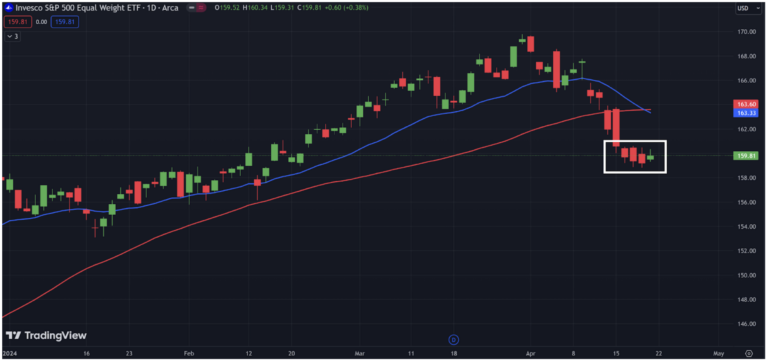 But you can also see that – for the last four trading days of the last week – the RSP traded mostly sideways. Its price appears to be consolidating.